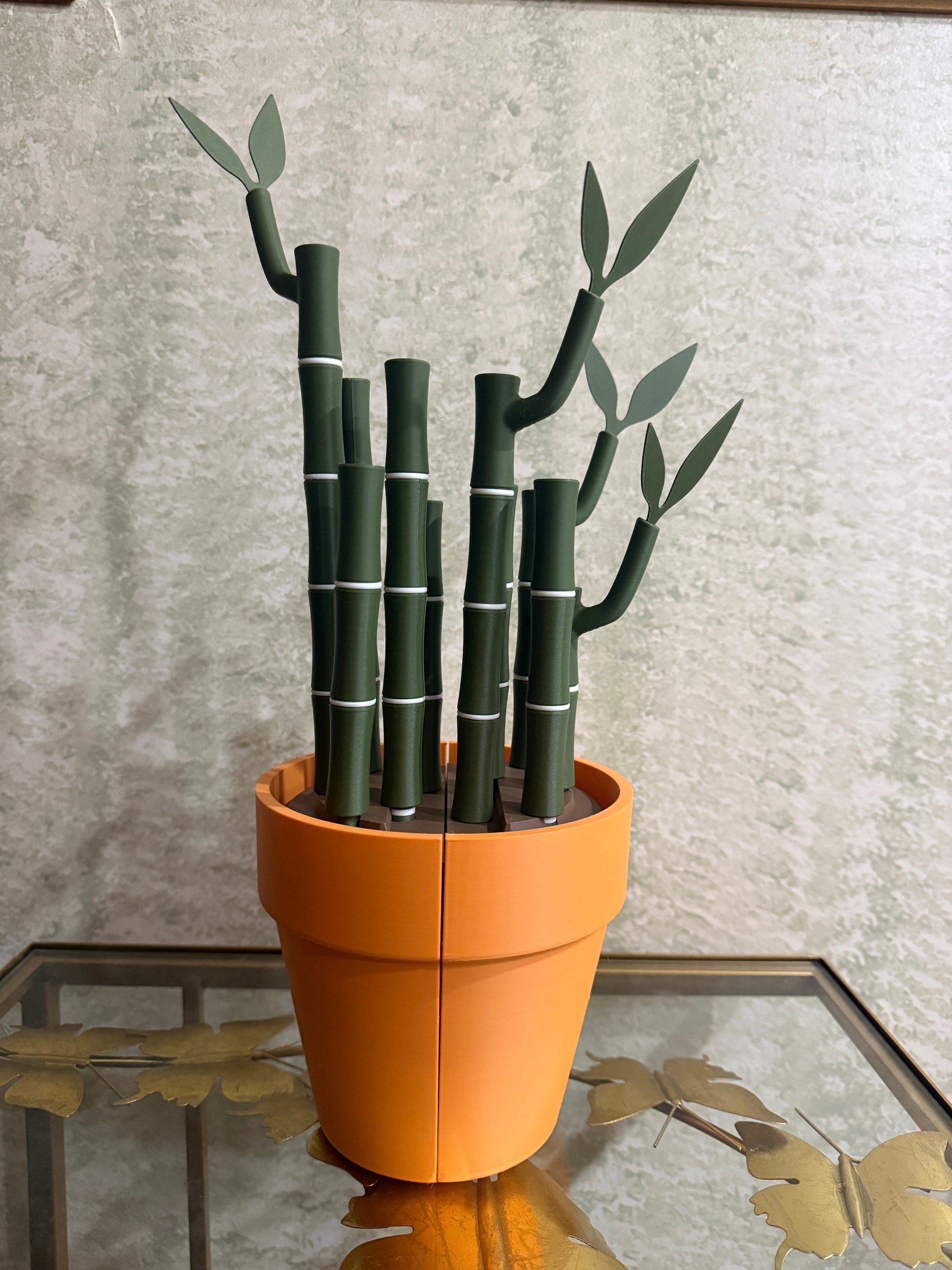 Expertly 3D printed, this bamboo plant is crafted with high-quality materials to ensure durability and a sleek finish. The vibrant green bamboo shoots, designed to mimic real bamboo, are not only eye-catching but also functional. Each pen and highlighter comes with a cap to keep them fresh and ready to use. The bookmarks are sturdy yet flexible, making them perfect for marking your place in your favorite books. The entire set is lightweight yet strong, ensuring that it holds your books firmly in place while also serving as a conversation starter.