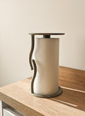 Paper towel holder, inspired by the roots, ideal for the kitchen. It consists of two parts between which the roll is inserted and fit, the side can slide to serve as a stop to cut. It has a maximum roll size of 24 cm long and 12 cm wide.