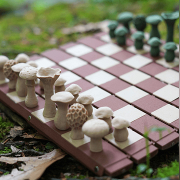 Forest Chess Set - Log and Mushroom Chess Board